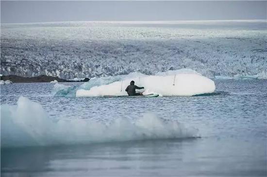 别人乘船去打鱼,他乘船出去在冰川上画画