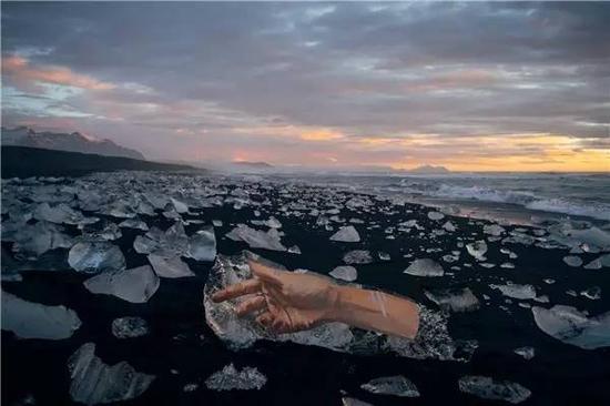 Sean还不满足于此,把海面上的冰川都当作他的“画板”。