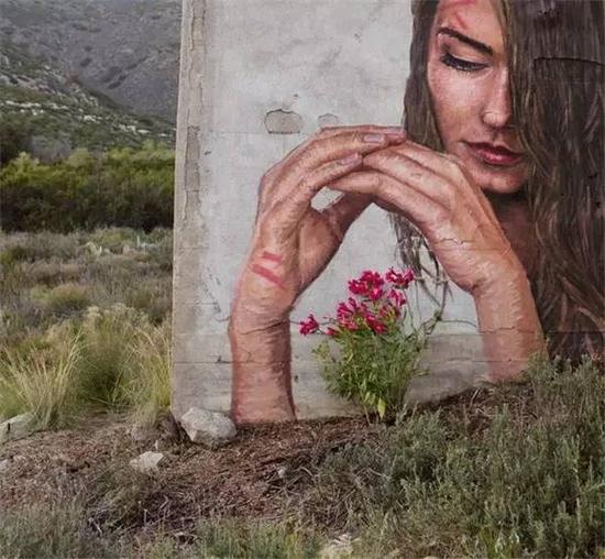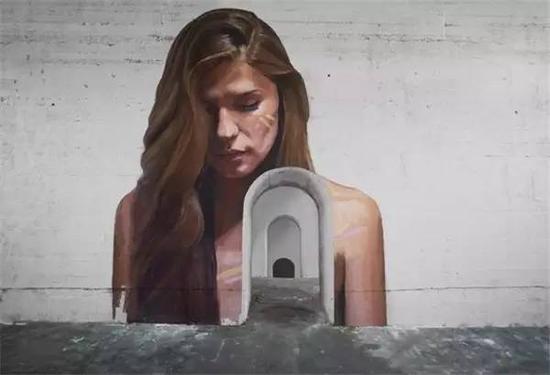 除了这些与水结合的互动型壁画作品,他还在街头绘制了一系列传统类型的画作,在细致温柔的情调之中将画作融入带有个人风格的自由元素,仿佛创造了另一个世界。
