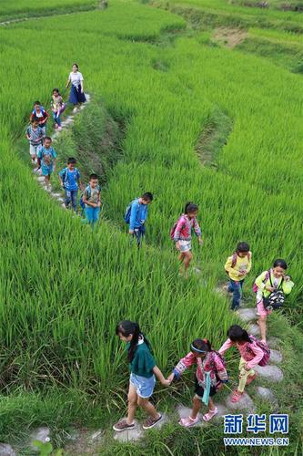 9月6日,在广西柳州市融水苗族自治县大年乡高马村小学,梁?;辉诮毯⒆用谴蚬?。