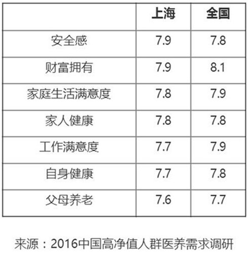 而上海方面,千万高净值人群数量占比15.3%,达到20.5万人,增幅13.3%。工作生活状态满意度的各项指标上,上海高净值人群普遍在家庭生活满意度、工作满意度、自身健康、父母养老、财富拥有等方面低于全国平均水平。