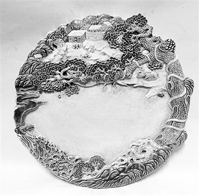 笔者收藏有一款清代光绪年间制作的瓷砚(如图),为当时的瓷雕名家王炳荣所制,它呈圆形,直径18.3厘米,高4.6厘米。既然是瓷雕名家所制,当然要使用 瓷雕工艺??吹秸饪钛馓?,你才会对当时的瓷雕艺术叹为观止,只见层层叠叠,使用浅浮雕和高浮雕的形式,在砚台上雕刻有山水树木。青绿色的山郁郁葱葱,连成 一片;山脚下有一处人家,黄色的房顶,土褐色的房子,淡青色的院墙,一派恬淡幽静;院子外的田野,是黄色的,种着淡青色的植物形成点缀。有一棵大树,苍劲 有力,呈弯曲状,摇曳着,覆盖着这半片山,半片水,褐色的树干,圆形的树瘿,稠密的枝叶,都十分传神;上面的树根呈淡青色,下面的树根呈黑褐色,盘根错 节,结结实实地扎在泥土里。在大树之下,是一片水,寂静无声,这便是砚台的中心部位——可以研墨的砚心,没有上釉,倒更显得有古朴的味道,散发出幽幽古 香。