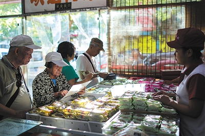 昨(8)日,稻香村马甸桥店,顾客们在选购月饼,该店月饼包装上印有新标。 新京报记者 彭子洋 摄