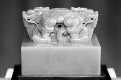 9月8日,知名拍卖行苏富比在香港举行中国艺术品秋季拍卖会传媒预展,重点展示、推介三款清乾隆御制,包括和田青玉交龙钮方玺“太上皇帝之宝”、“湘江秋 碧”古琴、粉彩粉地包袱式盖罐一对。其中,“太上皇帝之宝”玉玺高11厘米、长宽各12.8厘米,体积仅次于北京故宫所藏同印文方玺,为民间及拍卖市场流 传所见最大方玺,拍卖估价高达8000万至1.2亿。
