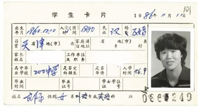 郎平在北师大的学生卡。 北师大党委宣传部提供
