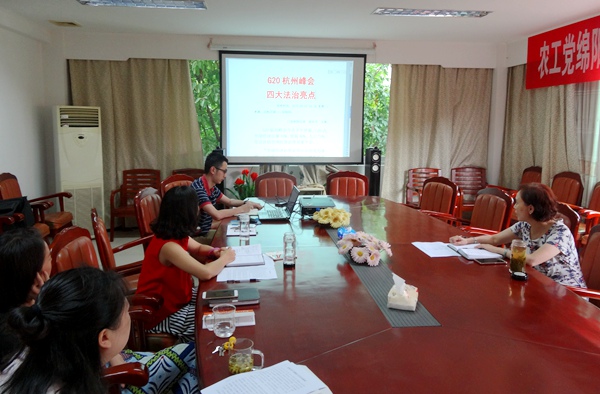 2016年9月7日,农工党绵阳市委会召开机关学习例会,专题学习G20峰会与全国卫生与健康大会会议精神。农工党绵阳市委会驻会副主委李晖参加学习。