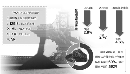 随着各项政策措施出台实施和市场预期的改善,煤炭行业化解过剩产能工作取得了阶段性成效。数据显示,截止到8月底,全国煤炭去产能完成了今年全年任务量的60%,累计退出产能1.5亿吨。从产量上看,4月份以来全国煤炭产量出现下降,上半年全国规模以上煤炭企业原煤产量16.3亿吨,同比减少1.75亿吨,下降9.7%。从月度产量变化看,4、5、6月降幅分别为11%、15.5%和16.6%,降幅逐步扩大。