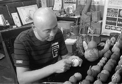 “2001年,有一个朋友过生日,我想不出送什么礼物,正好看到电视里在介绍蛋雕作品,所以自己也想去试一试。”