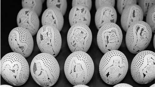 何永江说,失败率最高的当属吴用,“吴用的手里拿着一把扇子,要勾勒出他的羽扇纶巾,很不容易。雕刻吴用失败了三次,到第四个蛋的时候才算成功了。”