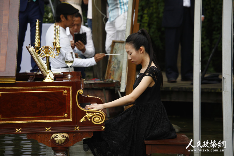 活动主办方负责人品堯介绍说,这价值百万的古钢琴是两天前刚从上海运抵过来的。虽然钢琴经过一些防护措施,但泡在水里还是有很大风险的。