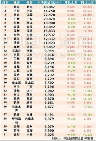 据中国经济网记者了解,全国房价排名前十的为北京、上海、南京、广州、杭州、天津、福州、合肥、武汉、济南。在31省区中,11地的住宅均价超过1万,除去北上广外,南京、杭州、福州、合肥、武汉等这些热门省会无一例外,全部过万。
