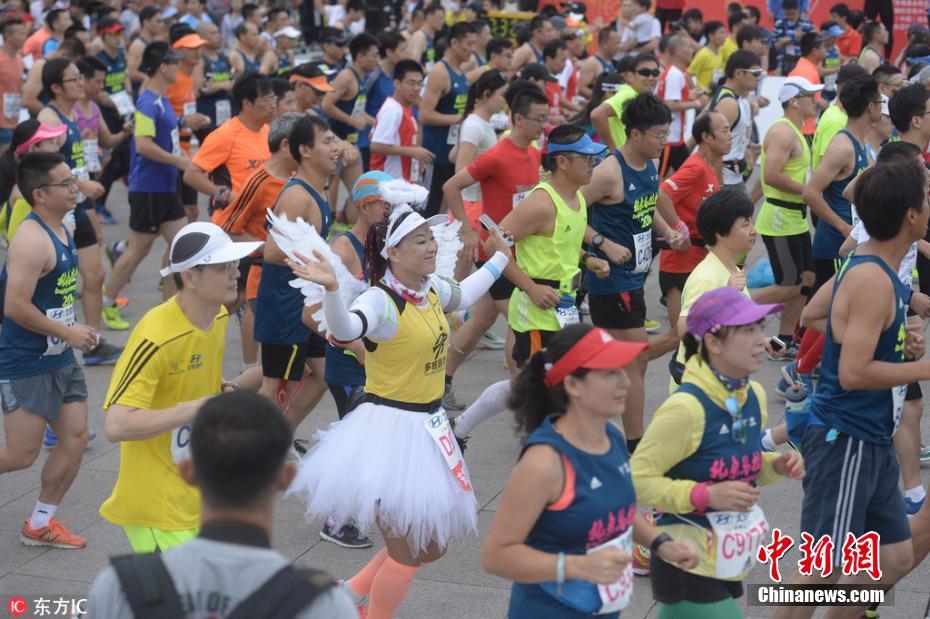 关键词:2016北京马拉松开跑 选手 奇装异服 夺人眼球