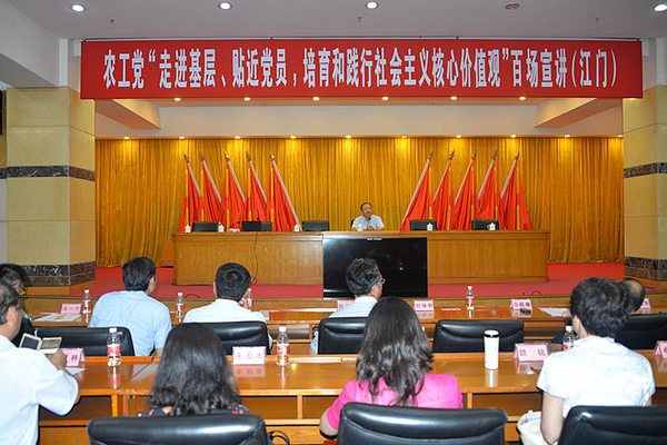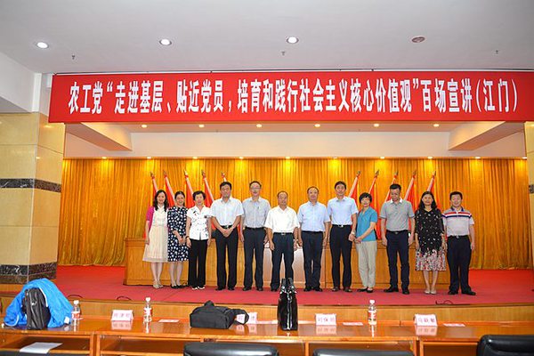 2016年9月13日,农工党“走进基层、贴近党员,培育和践行社会主义核心价值观”百场主题宣讲活动走进江门,进行广东省的第五场宣讲。江门市政协副主席、中共江门市委统战部部长马跃敏应邀出席宣讲活动并致辞,宣讲会由农工党中央宣讲团领队刘保明主持。农工党广东省委会专职副主委刘启德、江门市委会主委周津明、中山市委会主委路铭、珠海市委会副主委卓俏珊,中共江门市委统战部副部长冯一宁等出席宣讲活动。