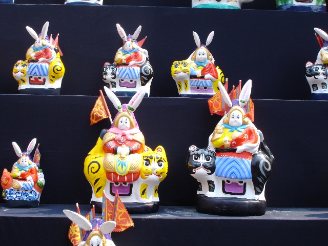 说到拜月就离不开“月亮码儿”?!霸铝谅攵本褪羌腊菰铝潦庇玫脑律竦摹吧裣瘛?。为了表明圆圆的神像是月亮,人们会在“月亮码儿”上画上嫦娥和她的侍女,或是画上捣药的玉兔、桂树和月宫。据说历史上每到中秋,人们都会从市上请回“月亮码儿”,傍晚时摆在院中?!霸铝谅攵钡那懊婊挂诜殴┳?,上面摆上“五供”,再将代表吉祥如意的水果,如石榴、桃子等放置其上。按“男不拜月,女不祭灶”之说,拜月的时候,男性是不能参加的,拜月通常由家中女性长辈主持,全家的女性及孩子双膝跪地拜祭月神,祈求一家平安。