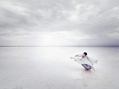 旁边的一幅作品初看是一个身着中国古代服饰的舞者在湖上热舞,同样极具中国特色。德斯坦女士向我们介绍道这幅作品出自一位在中国生活很久的摄影师马修·贝林。广告专业出身的马修,将专业与摄影精密结合,与多家大品牌建立长期合作的关系。