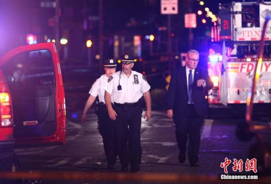 当地时间9月17日晚,美国纽约市曼哈顿发生爆炸事件,伤者人数已上升至29人,一人伤势较重,但无生命危险。初步调查显示,这是一起“有意行为”,但目前尚无证据显示爆炸与恐怖袭击有关。图为纽约警方现场勘查。中新社记者 刘震 摄