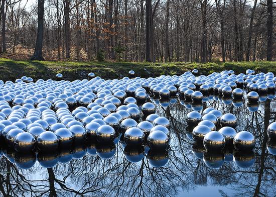 在此之前,她刚刚完成了临时那克索斯花园动态雕塑,也就是在房子下面的一个小湖上漂浮了 1300 个镜面球。