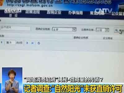 记者登录商务部网站,在经过批准的全部77家直销企业中根本没有自然阳光公司的名字。没有得到批准却声称拿到了直销许可。