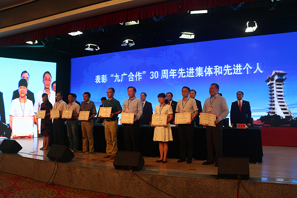开幕式上对九三学社北京市委等全国18个“九广合作”先进集体和屠鹏飞等44名先进个人进行了表彰
