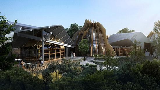 建筑从张大千作品中的诸多形态出发,衍生出独特的造型