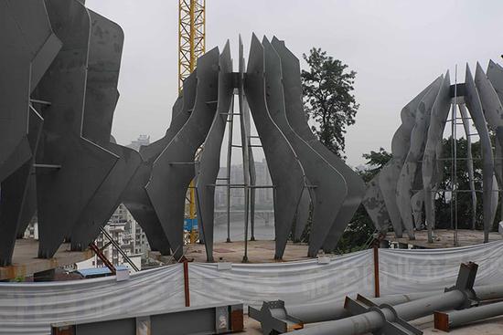 垂直立面由一系列相互咬合的脊梁组成,而建筑的几何形状又是中国符号葫芦的抽象演绎