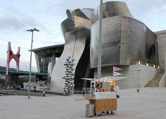 把街边餐车开成地标建筑的官方合作伙伴是种什么体验?看看在古根海姆博物馆西班牙毕尔巴鄂分馆门前的这辆小车就能知道。