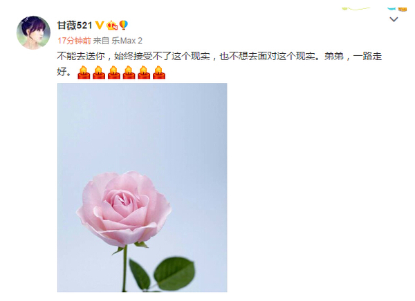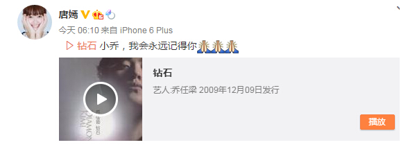 唐嫣也一早发文悼念:“小乔,我会永远记得你?!备兽币渤谱约何薹ń邮苷飧鍪率担淙徊荒苋ハ殖∷捅?,但是祝愿他一路走好。