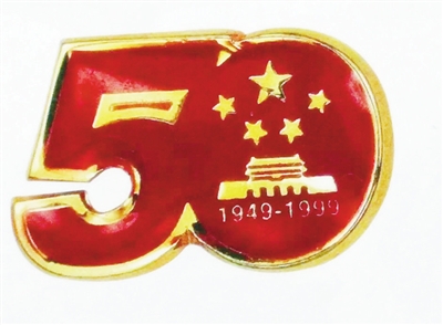 国庆50周年徽章改革开放后,不再是每年都制作国庆纪念章,而是逢“5”小庆、逢“10”大庆才制作纪念章,其他年份的难得一见。