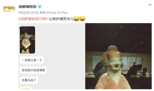 关键词:成都博物馆 陶俑 撞脸 马龙 马龙微博