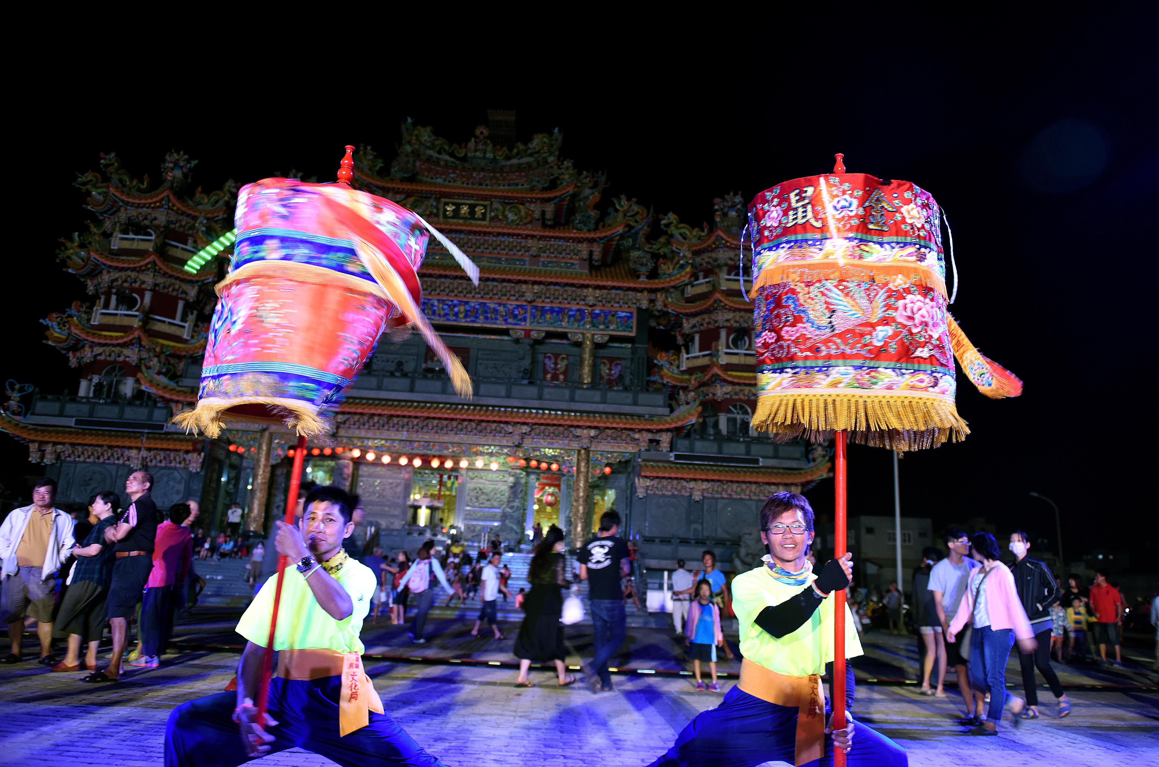 9月24日晚,台湾澎湖锁港紫微宫前广场,巨型光雕展演引来人潮如织。其中,应邀亮相的澎湖传统民俗技艺“踏凉伞”,为新锐的视觉盛宴平添了几分“古早味”。新华社发