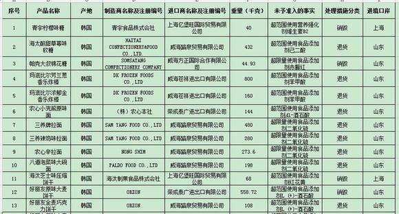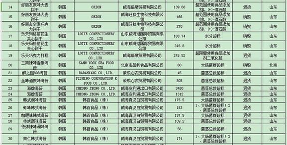 关键词:8月 韩国61批次食品 遭拒 好丽友 乐天 农心 黑榜