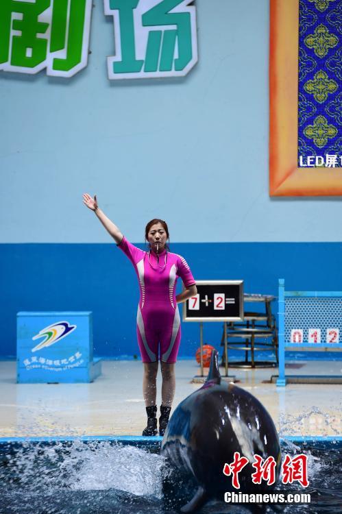 白鲸、海狮、海豚、海象等海洋动物是蓬莱海洋极地世界的“明星”,它们聪明、温顺,善于模拟人类的高难度动作,能为观众献上精彩的演出,收获了大批“粉丝”?!疤ㄉ鲜种樱ㄏ率旯Α?,海洋动物们能学会这些表演技能,离不开驯兽师的付出。 蔡红文 摄