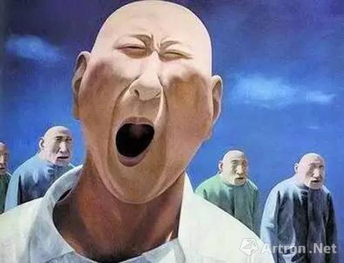 这件作品是方力钧的绘画,是登上美国《时代杂志》封面的绘画。如果按照我们传统的艺术标准来看,这件作品第一感觉就是“丑”,这样的作品能上封面,美国人是故意的吧,是弱智吗?