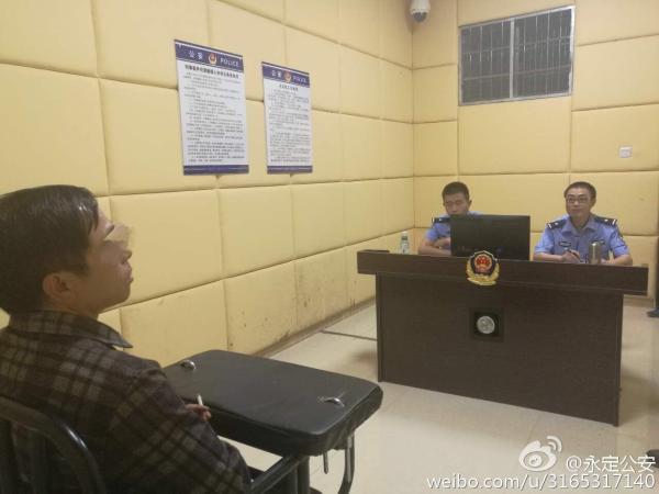 办案民警对嫌犯杨某审讯。 张家界市公安局官方微博 图