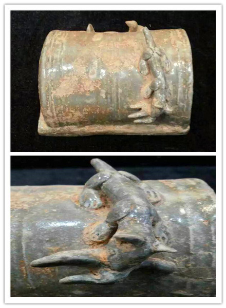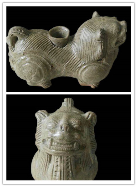 图6。 越窑青瓷堆塑动物黄鼠狼抓鸡