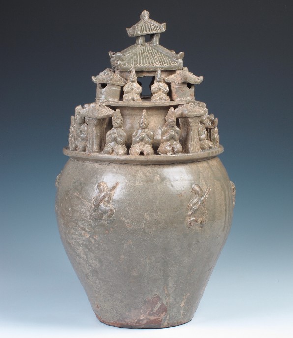 汉末西晋社会动荡,大量边境地区少数民族人群被强行掳掠迁徙到中原,以补充内地劳动人手及兵源的不足。这些掳徙来的胡人,成为当时社会地位低下的“依附民”,依形制型烧制成瓷俑随葬,反映了与墓主人的主仆关系。再则,随着汉武帝平定南越以后,海外贸易现象产生。随之而来的还有佛教和胡僧。这与这对瓷俑一并出土的青瓷堆塑罐上双手合十,作祷告状的胡人互为印证,从一个侧面佐证佛教是通过海上由东南沿海传播的。