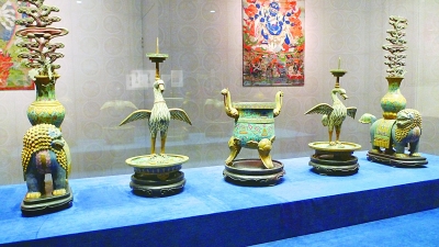图为首都博物馆“走进养心殿”展中展出的嵌珐琅饕餮纹五供。本报记者 邱爽摄/光明图片