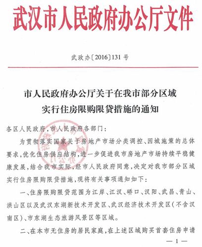 《通知》指出,为贯彻落实国家关于房地产市场分类调控、因城失策的总体要求,促进武汉市房地产市场平稳健康发展,结合武汉市实际,决定对武汉市部分区域实行住房限购限贷措施。