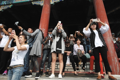 14点,在园游人共计18万。其中,颐和园东宫门、北宫门,北海正南门,中山公园东、南门游客量较大,客流不断;动物园正门游客逐渐减少;香山公园上山索道近乎满员,香炉峰游客人数较多;景山公园万春亭拍照赏景游客较为集中,但尚能保证顺畅游览,未达到景区最大承载量。