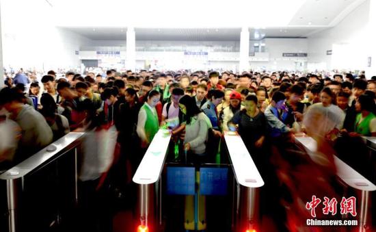 资料图:“十一”国庆假期来临,中国铁路迎来旅客出行高峰。中新社记者 鲍赣生 摄