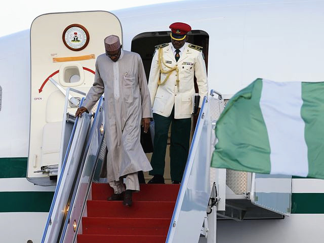 3月30日,尼日利亚总统专机抵达美国马里兰州安德鲁斯机场,尼总统布哈里走下飞机。