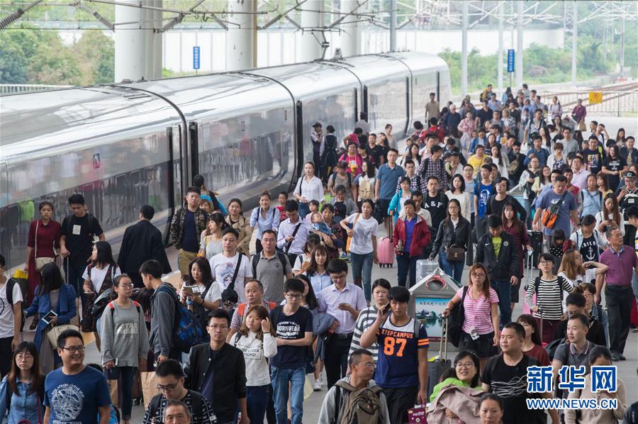10月6日,旅客在南京火车站出站。国庆假期进入第六天,随着长假进入尾声,长线游客陆续返程,民航、铁路、公路相继进入返程高峰。 新华社发(苏阳 摄)