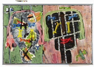 第二,吕佩尔兹曾说,如果非要用一种“主义”来定义他的风格,也许用“碎片主义”还算比较贴切。在他的作品里,元素、主题、色彩、材料等都可以被视为理解碎片的切入角度,同一作品中的不同具象图像彼此之间似乎缺乏明显的关联,就像将各种碎片拼贴而成似的。与此同时,碎片不仅仅彼此被吕佩尔兹割裂地运用,而是承载着诸多象征寓意,与历史、神话、宗教关系紧密,碎片与碎片之间已构成一定的意义空间。