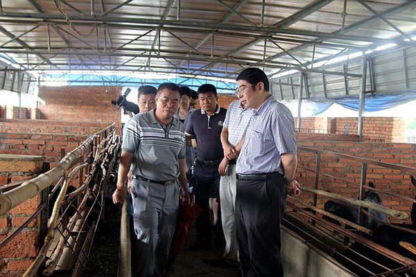 第一站,王路冒雨到定安县定城镇平和村养羊示范基地调研,深入羊舍考察了黑山羊的养殖状况,并向基地负责人详细了解示范基地的运行模式、项目社会效益、目前运营状况、贫困户在基地打工及种植牧草的收入等情况。当得知贫困户在基地打工每年每人有3000多元收入,每亩地种植牧草一年可收入6000-8000元,领养1只羊每年有1000元分红等情况时,王路感到很欣慰,对这种立足当地特色,见效快、前景好,有效吸纳当地农民特别是贫困农民就业的养羊扶贫脱贫模式予以充分肯定,鼓励基地要继续扩大规模,吸收更多的农民尤其是贫困农民参与进来,带领他们脱贫致富。并表示农工党海南省委会在定安县定城镇深田村的扶贫也将采取这种模式。