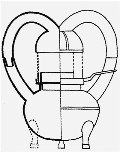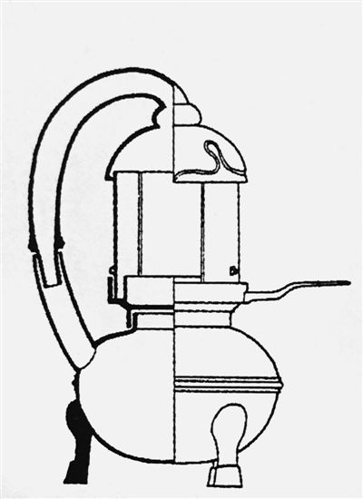 “长信宫灯”考古线图,该文物出土于河北满城二号汉墓。