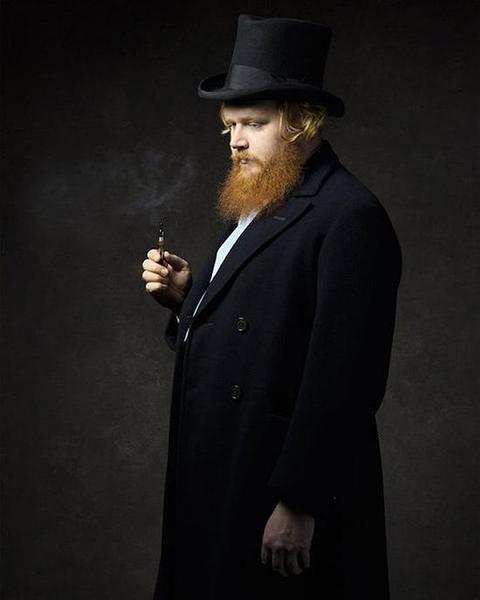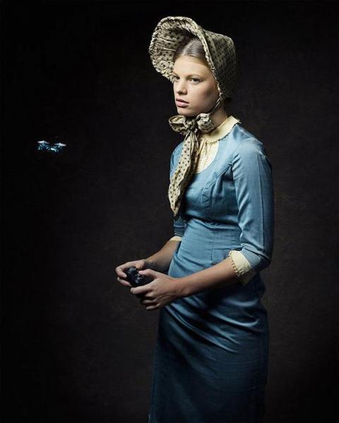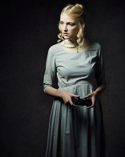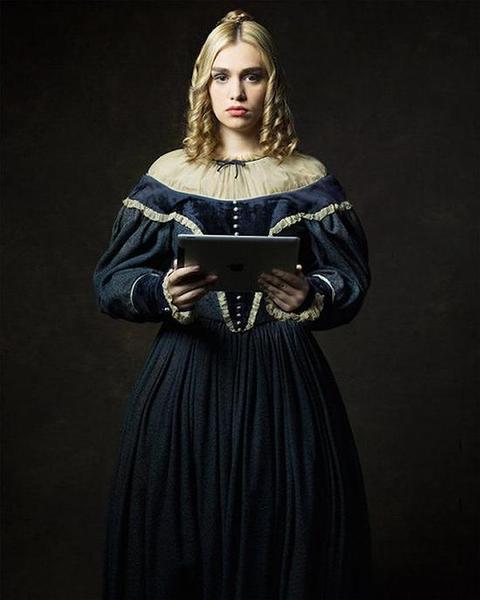洛杉矶摄影师孟庆?。≦ingjian Meng)最近推出了一个名为《淘金热》(Gold Rush)的摄影系列。这个有趣的摄影系列包含了19世纪人物的肖像照,照片中的人物正在使用各种各样的现代科技产品,包括平板电脑、苹果手表、电子香烟、蓝牙耳机以及无人机。