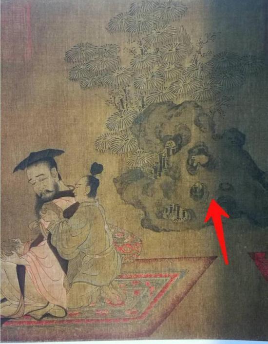 孙位所作《高逸图》中的石头是很高太的湖石,用细紧柔劲的线条勾勒出山石轮廓线,然后自淡至浓不同层次的墨色皴擦出太湖石的质感。最后设以淡色。表现出来太湖石的瘦、透、奇、怪,凸凹倾斜、阴阳向背。(包括同时期卫贤所作《高士图》的山石勾勒亦如此图。)
