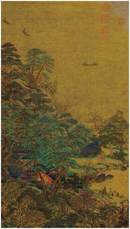 中国山水画按照表现手法分为:青绿山水和水墨山水两种。所谓青绿山水画,是用石青、石绿等矿物色为主设色。其艺术风格属于精巧瑰丽、工细典雅、富丽堂皇的特点。李思训即是青绿山水的继承者,在中国绘画史研究中有很大的影响。