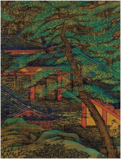 《江帆楼阁图》局部建筑界画放大图