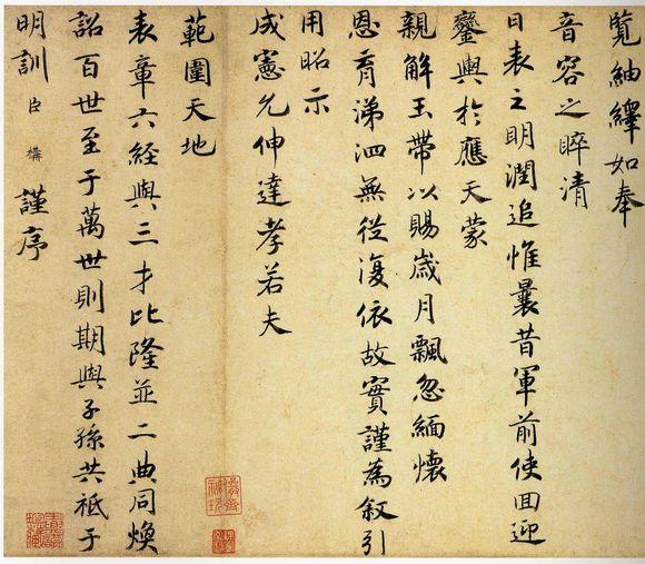 图十五清馆阁体书法(是官方专用字体,方正、光泽、乌黑并大小一致。因拘谨刻板,毫无个性而多遭诟病)